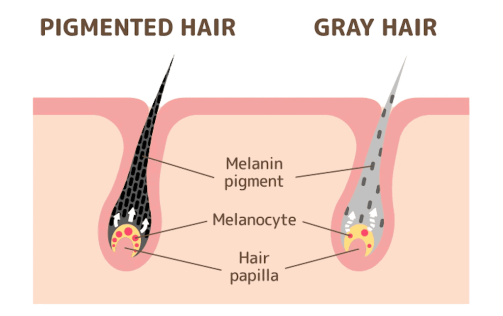 As we age, the production of melanin, the pigment responsible for hair colour, declines.