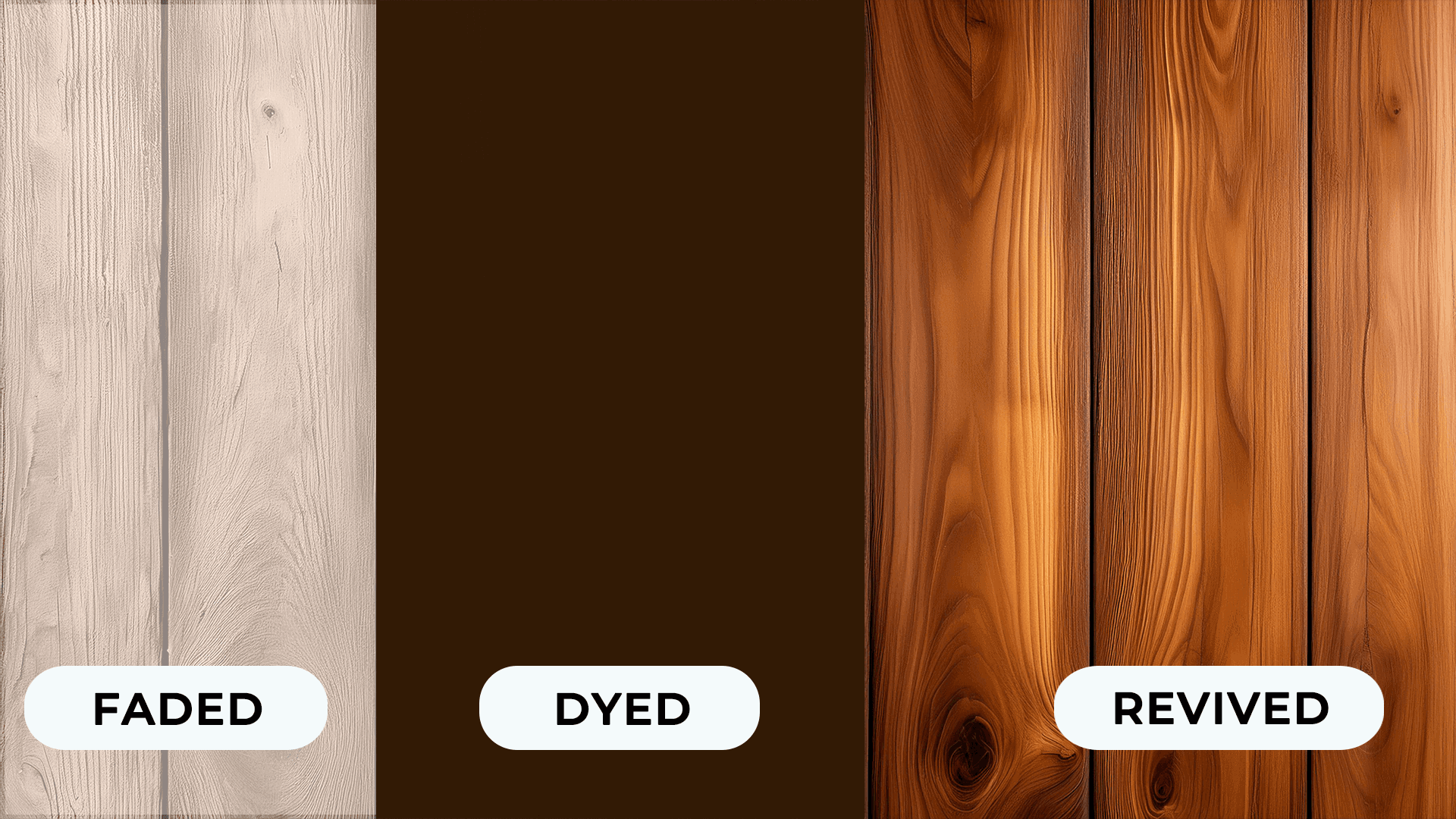 Dye creates a uniform colour, and the wood loses 100’s of it natural tones and it doesn’t look natural anymore.