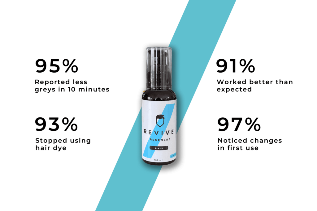 I can say hands down Revive is the best solution I’ve come across for greys. It’s much more natural than hair dyes and a lot easier to use. The results are fantastic and my girlfriend tells me I look 10 years younger !