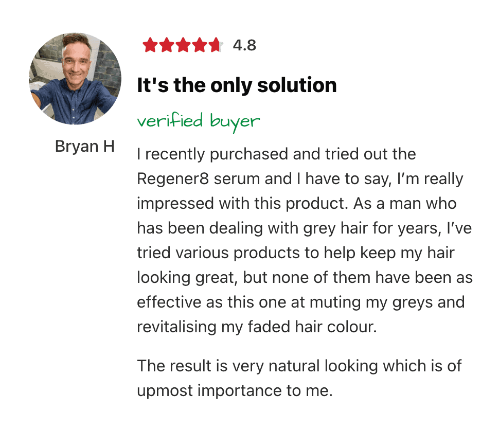 I recently purchased and tried out the Regener8 serum and I have to say, I’m really impressed with this product. As a man who has been dealing with grey hair for years, I’ve tried various products to help keep my hair looking great, but none of them have been as effective as this one at muting my greys and revitalising my faded hair colour.